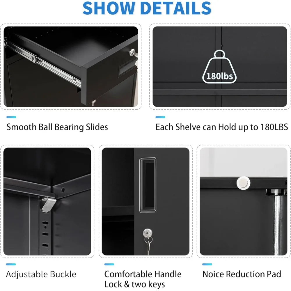 - ADJUSTABLE SHELF: Customize your storage with a shelf that can be adjusted to accommodate items up to 180 pounds, perfect for tools, files, and more.