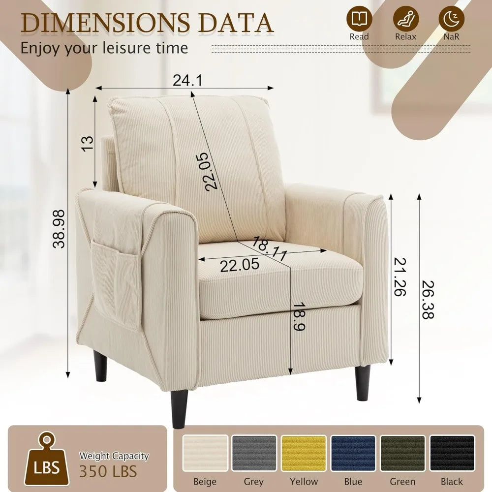 - Durable Corduroy Fabric: Crafted from high-quality corduroy, the chair combines durability with a unique texture, adding personality and warmth to your home.