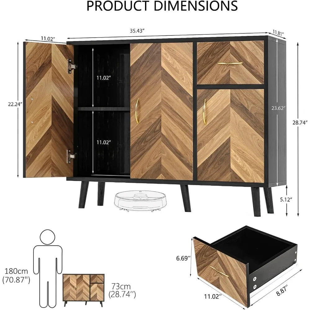 - Unique Design: Features a stunning two-tone design with a black finish and herringbone woven veneer sliding doors, adding a touch of elegance to any room.