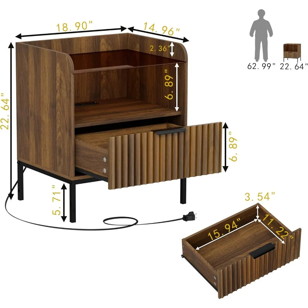Introducing the Ljustra Mid Century Modern Nightstand, a perfect blend of style and functionality. This stunning nightstand is designed to enhance your bedroom aesthetics while offering practical features. With its sleek glass top and fluted drawer, it's not just a piece of furniture; it's a statement.