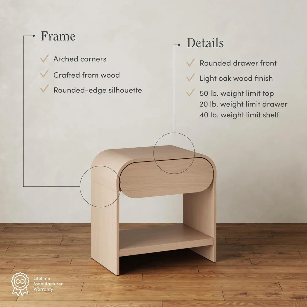 Mid Century Modern Nightstand Storage End Table Rounded Light Oak