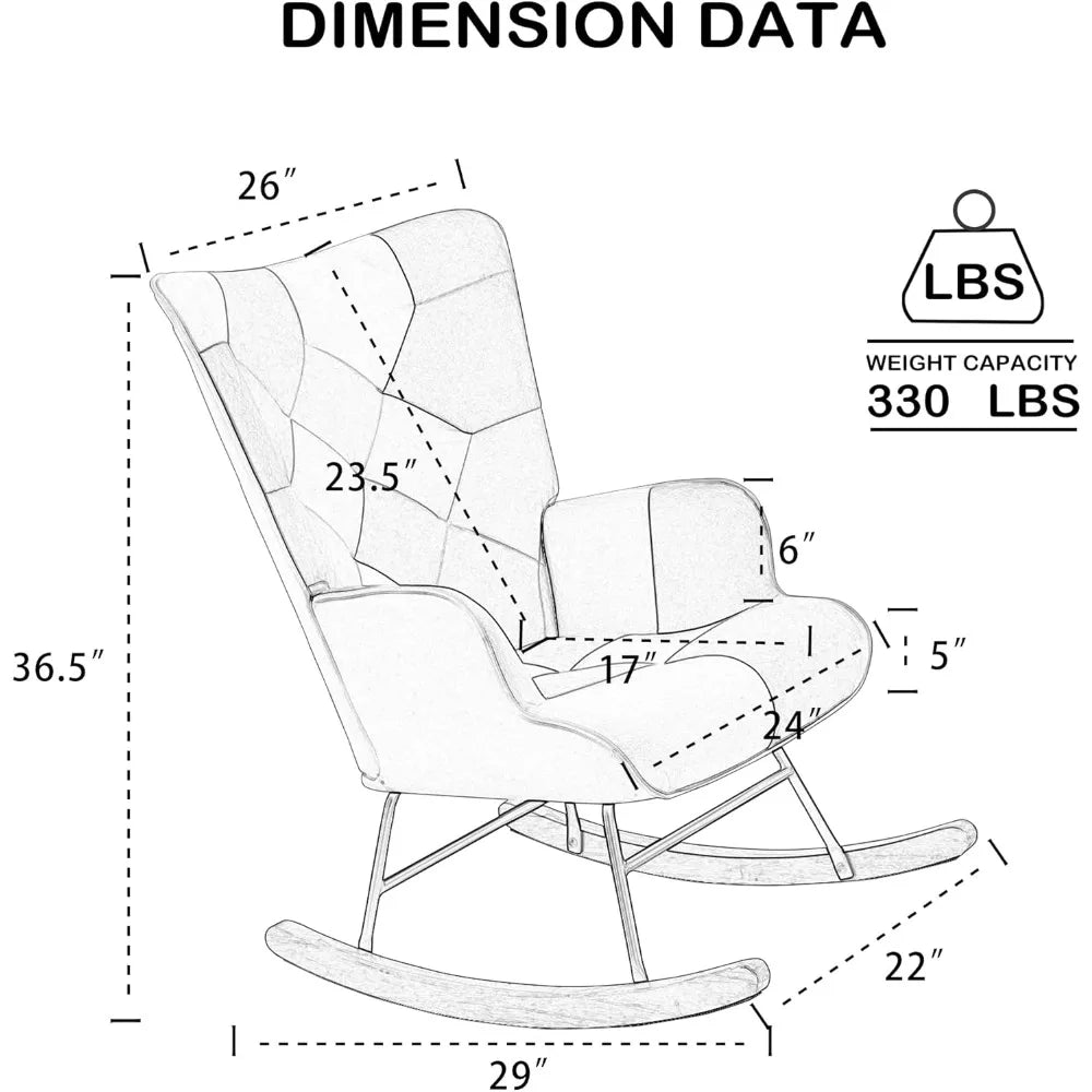 Mid Century Rocking Chair Fabric Recliner with Wood Legs for Living Room