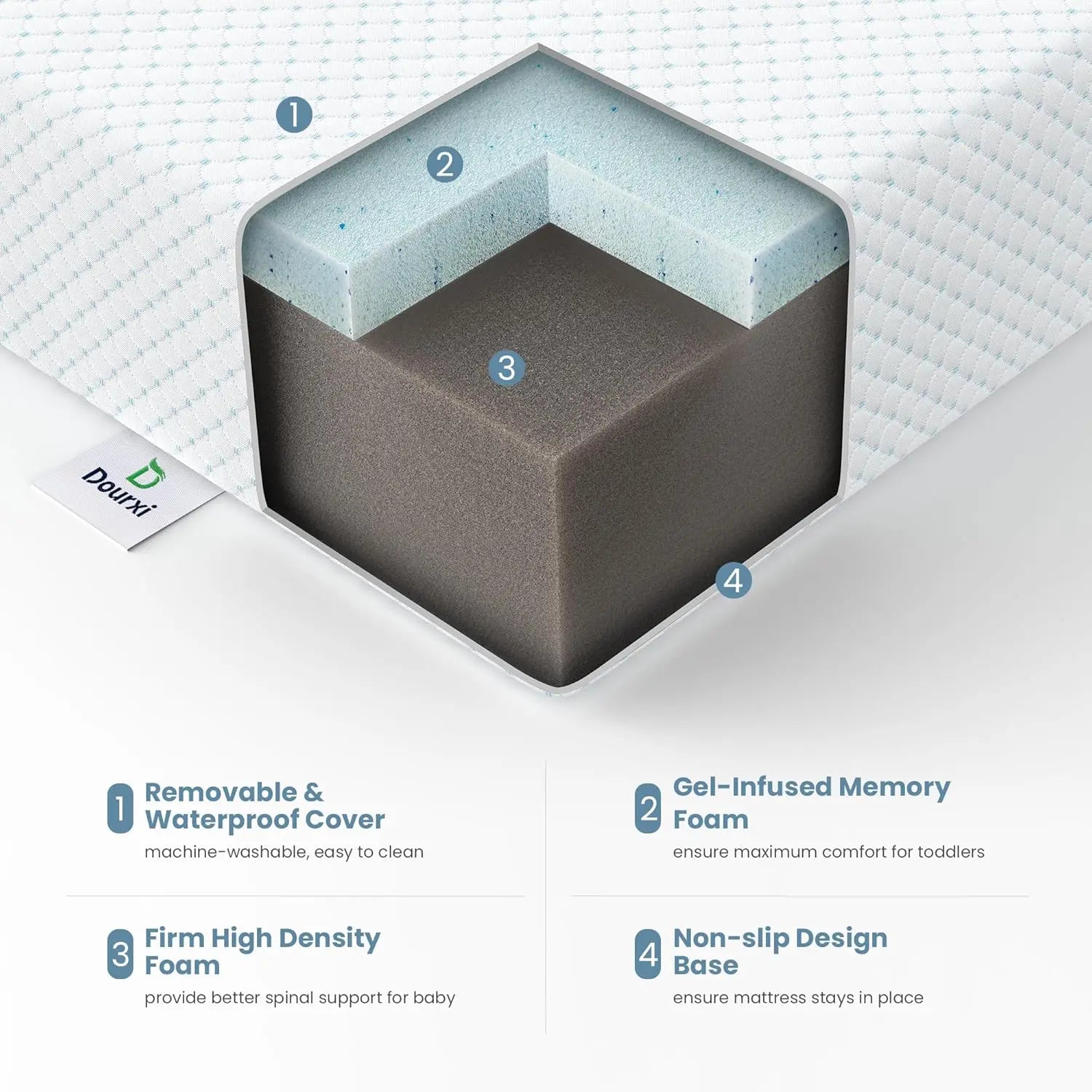 - Dual Firmness: Flippable design with a firmer side for infants and a softer side for toddlers, promoting healthy spine development.