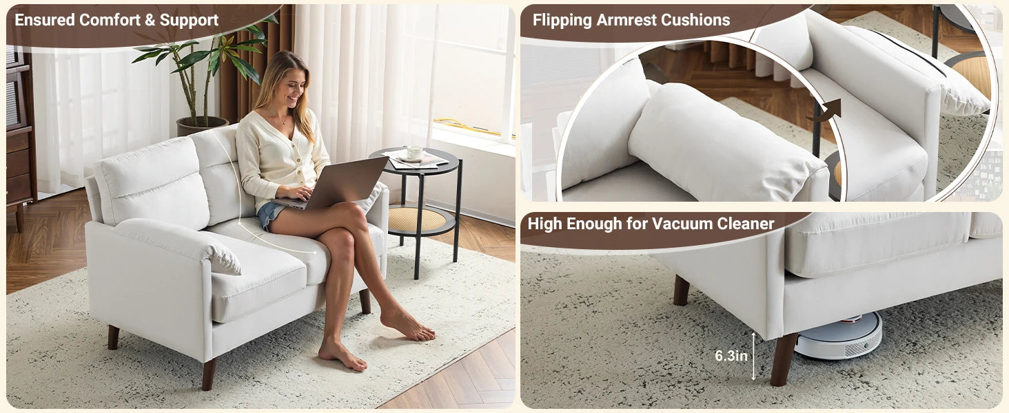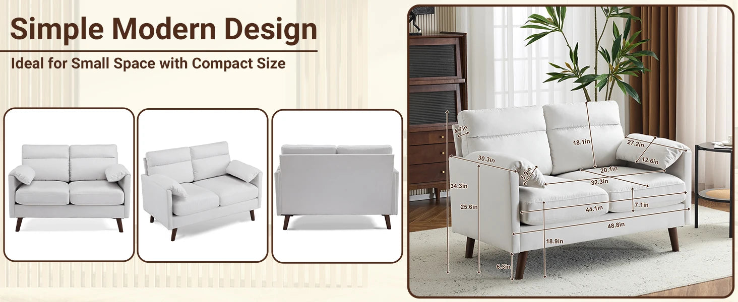 Introducing the Ljustra Mini Loveseat Sofa Couch, designed for comfort and style, perfect for small living areas. At 48.8 inches wide, this loveseat seamlessly fits into tight spaces, making it an ideal choice for apartments, studios, or cozy corners in your home.