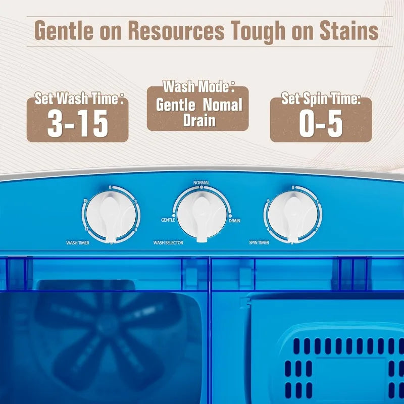 Introducing the Ljustra Mini Portable Washer and Dryer, your perfect laundry solution for small spaces. This compact twin tub laundry washer combines functionality with efficiency, making it ideal for apartments, RVs, and busy households.
