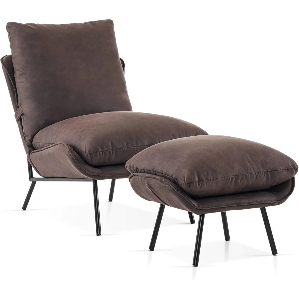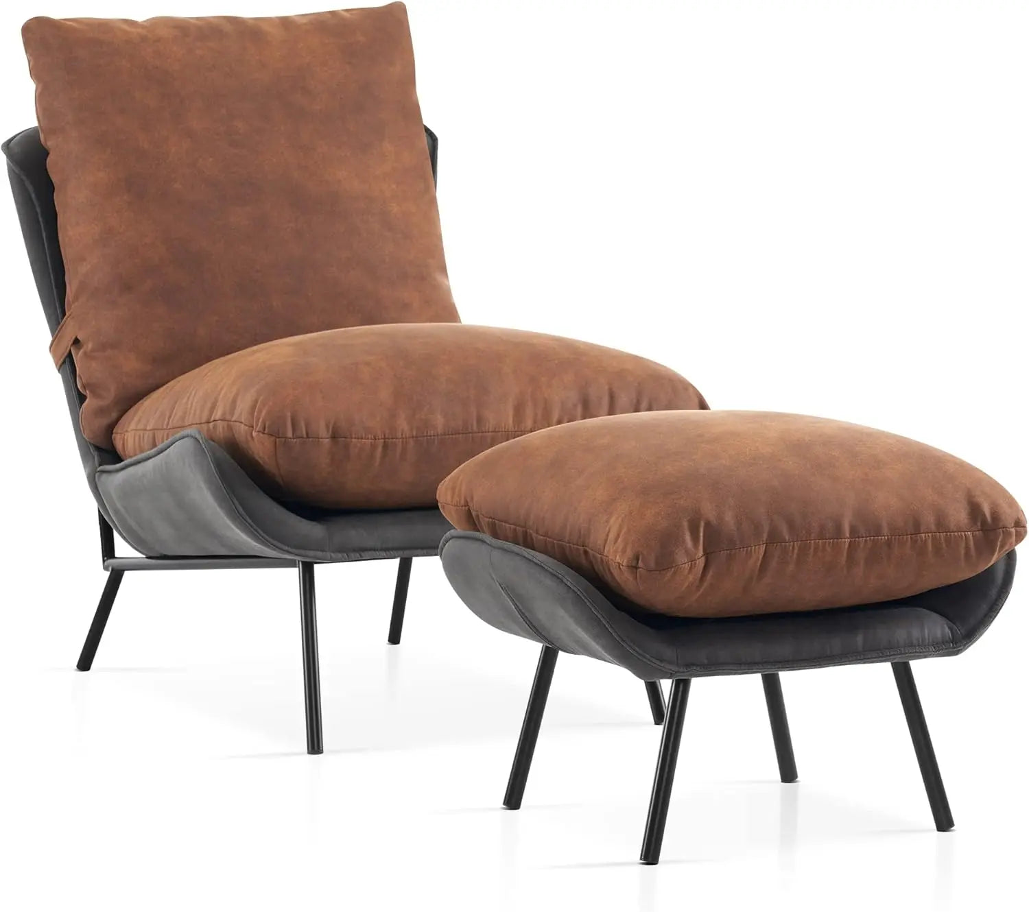 Modern Accent Chair Ottoman Leathaire Fabric Upholstered Small Space