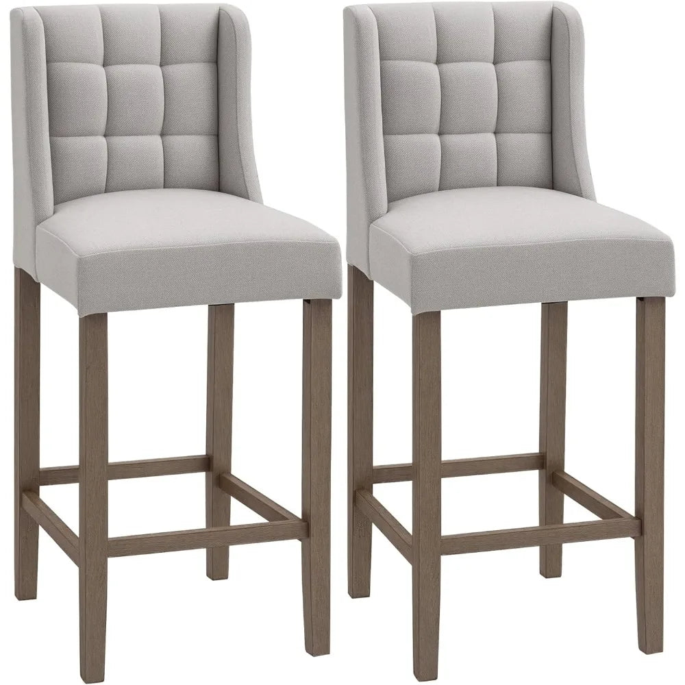 Modern Bar Stools Set of 2 Tufted Upholstered Pub Chairs Kitchen Dining