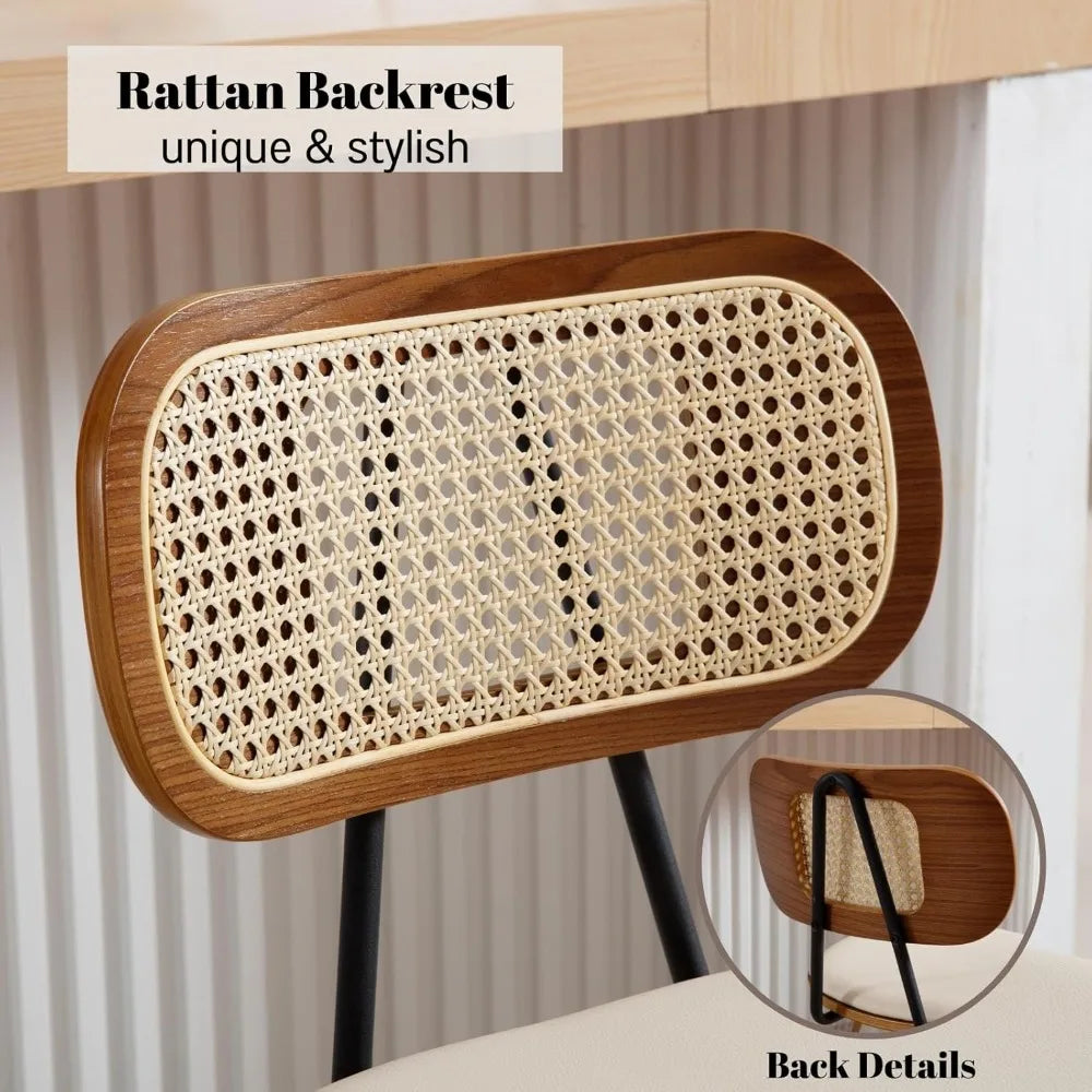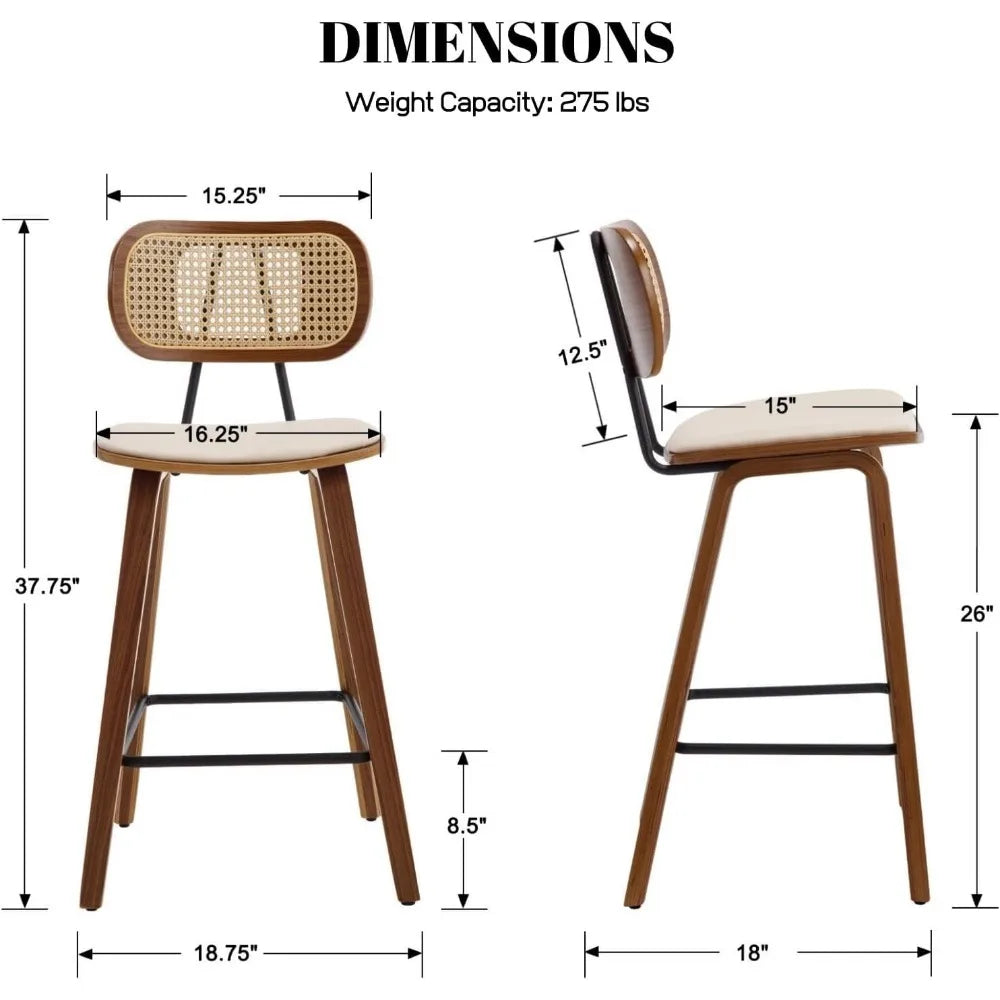 - Elegant Design: Featuring a PU upholstered seat cushion and open rattan backrest, these stools add a touch of relaxed sophistication to any space.