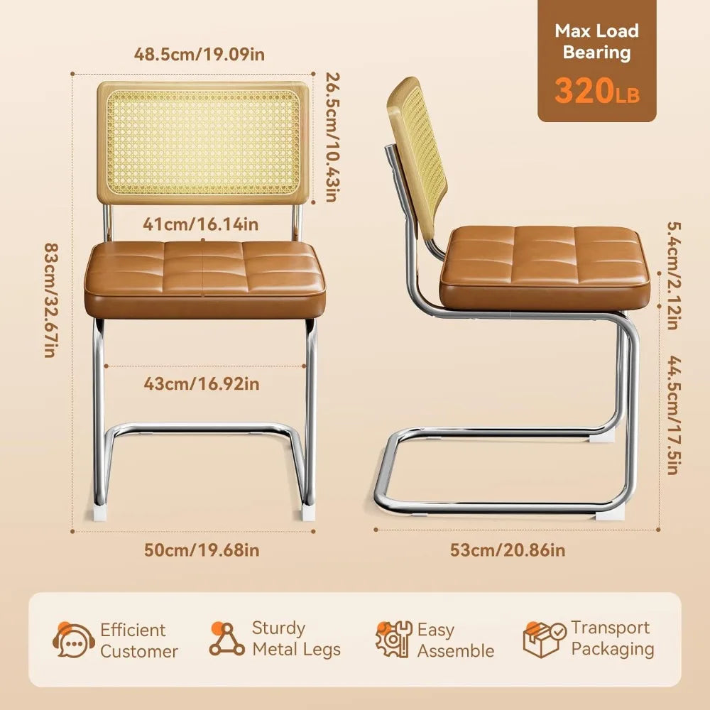 Modern Dining Chairs Set of 4 Faux Leather Cane Back Metal Legs Rattan
