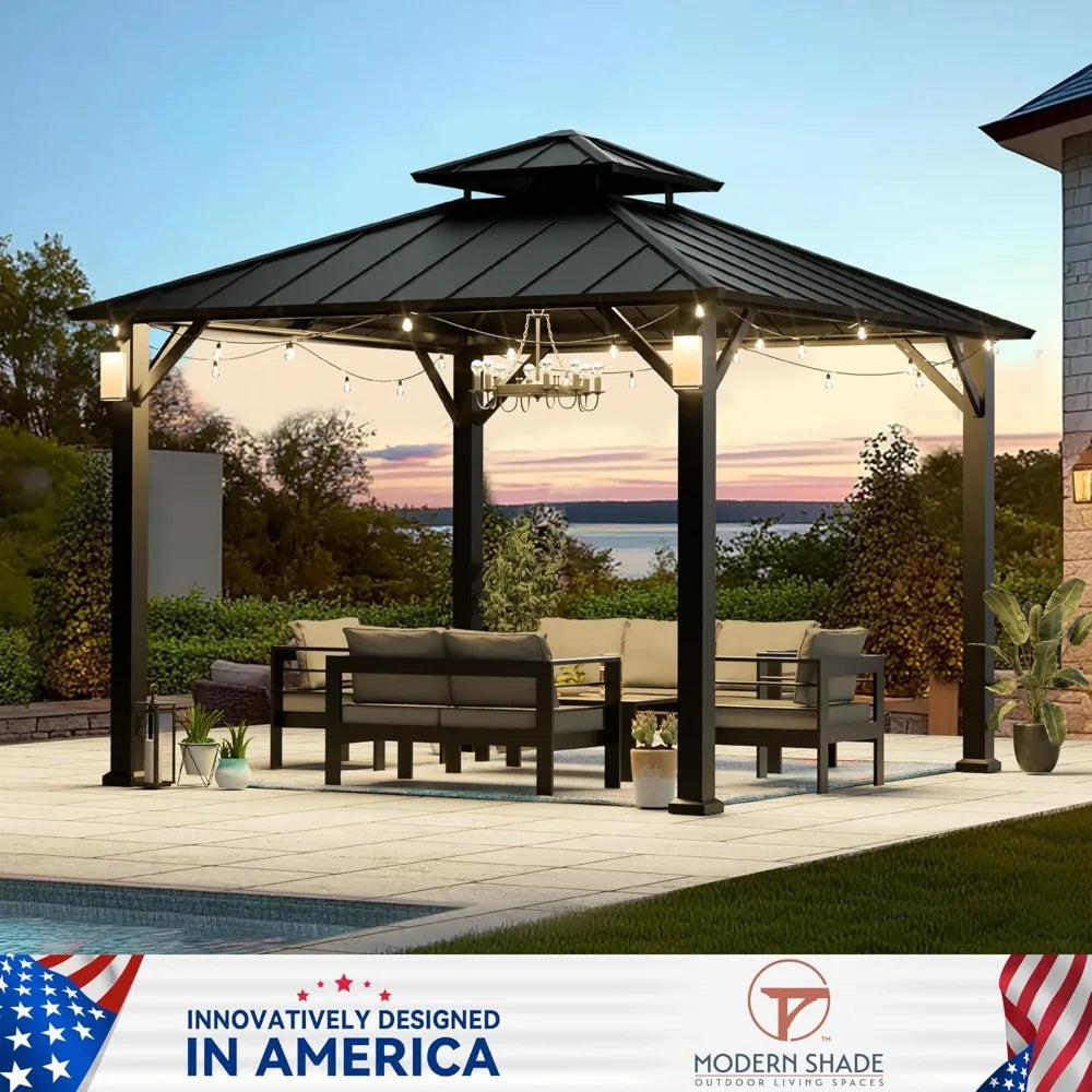 10x10 Modern Hardtop Gazebo with Metal Structure and LED Lights
