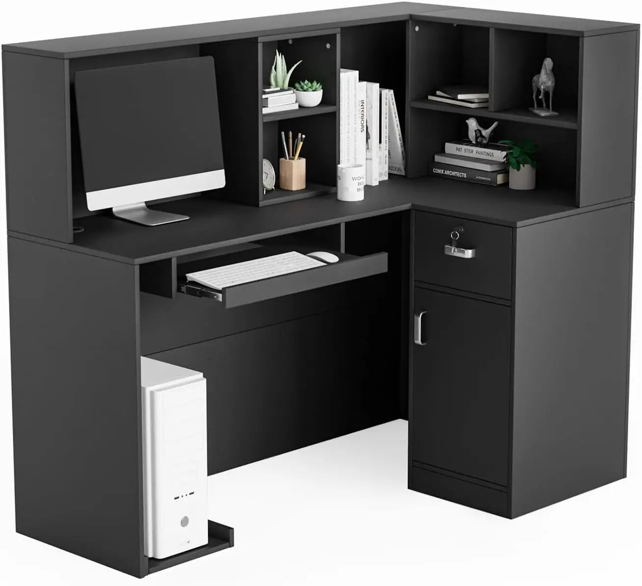 Modern Reception Desk with Moveable Shelves and Lockable Drawers
