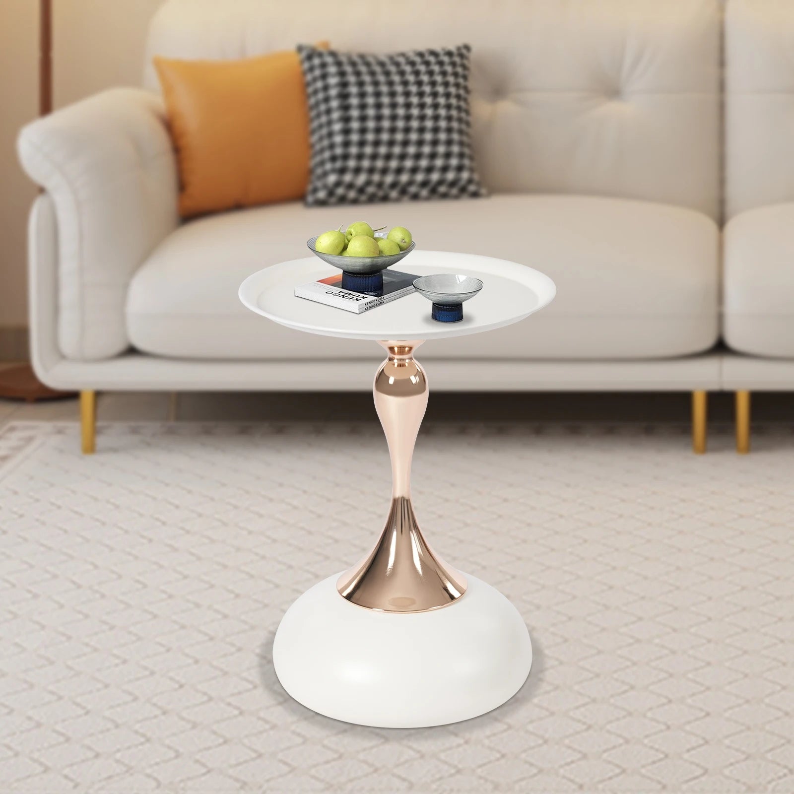 Modern Round Side Table White Metal End Table Small Coffee Table Living Room