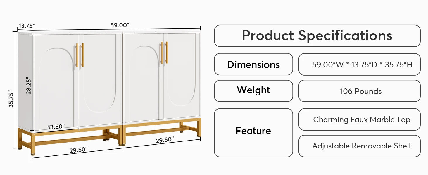 - Sturdy Construction: Crafted with a robust metal frame, this sideboard is built to last, ensuring you can customize your storage with ease.