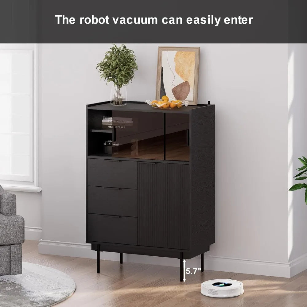 - Generous Storage: Features 3 spacious drawers, 2 sliding doors, and open shelves for organizing everything from wine and snacks to tableware.