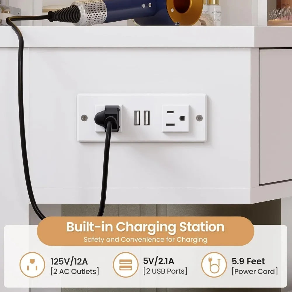- Vertical Power Outlet: Charge your devices or use styling tools without the hassle of tangled cords.