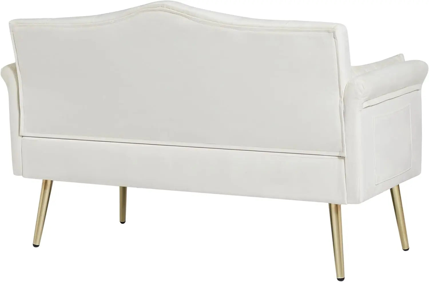 55 Inch Modern Velvet Loveseat Sofa with Gold Legs and Side Pockets