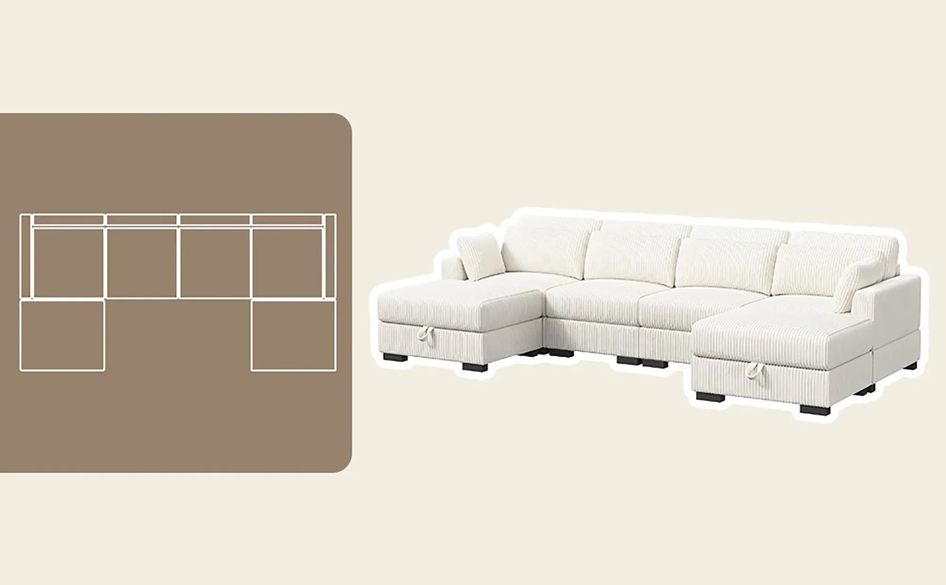 - 4 Seats without Storage: Left Sofa * 1; Right * 1; Single Sofa * 2; Lumbar Pillows * 4; Back Pillows * 4; Armrest * 2.