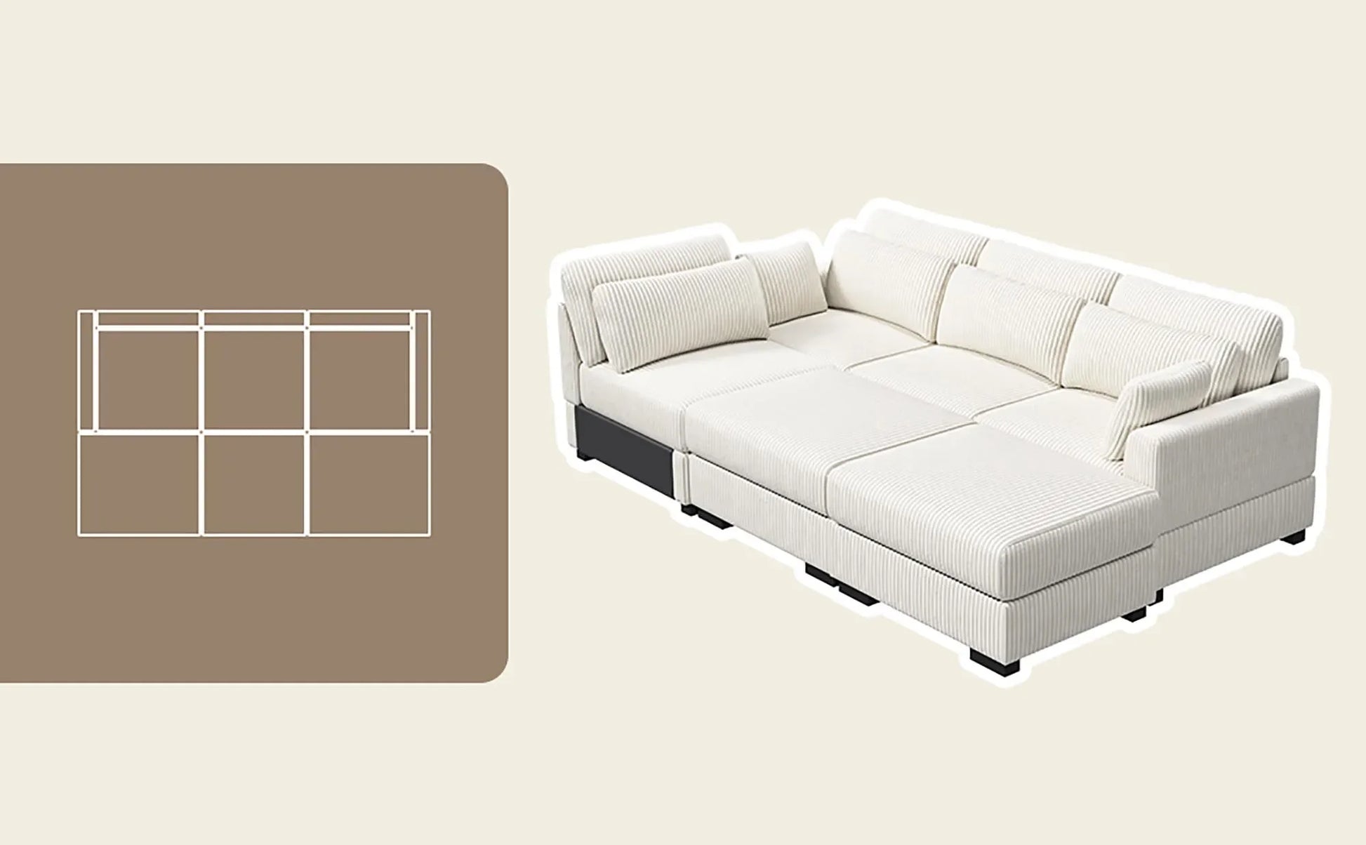 - Versatile Modular Design: Easily reconfigure this sectional sofa into U-shaped, L-shaped, or other arrangements to fit your unique space.
