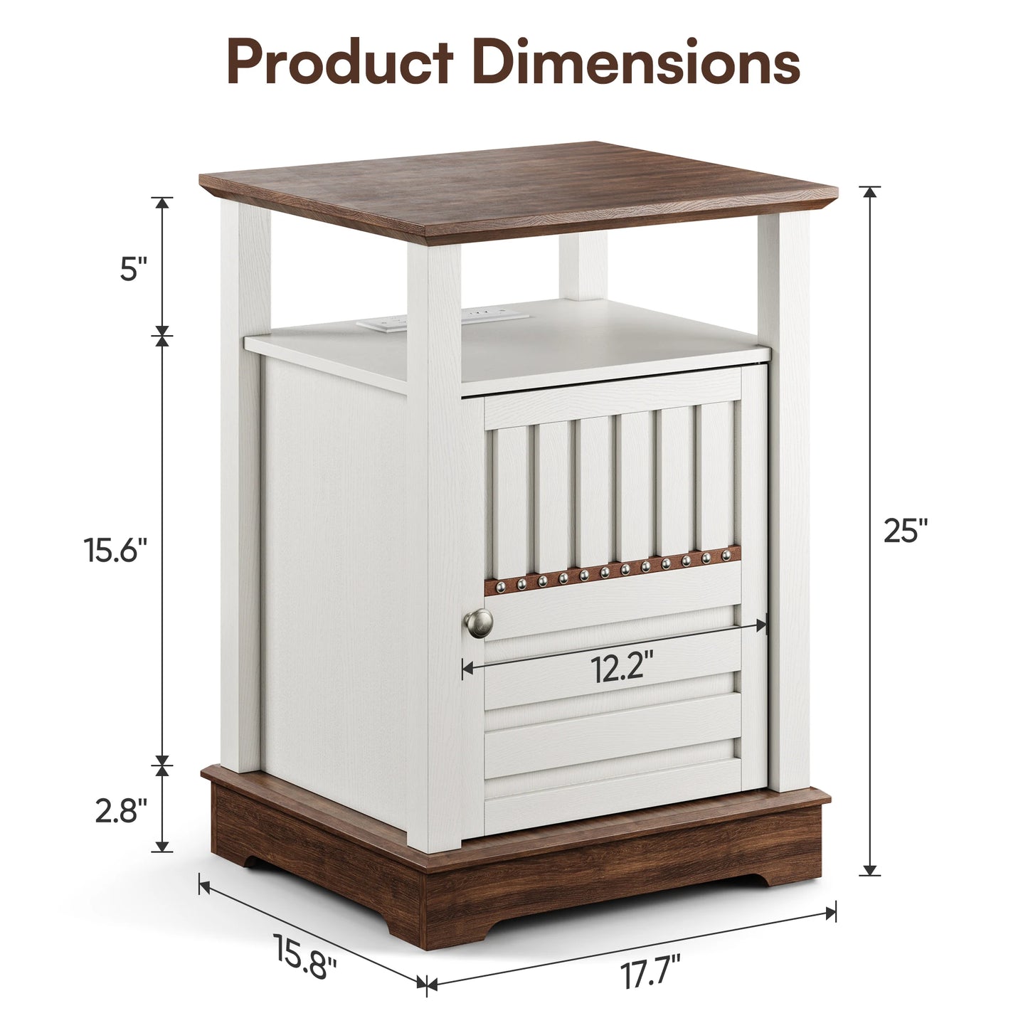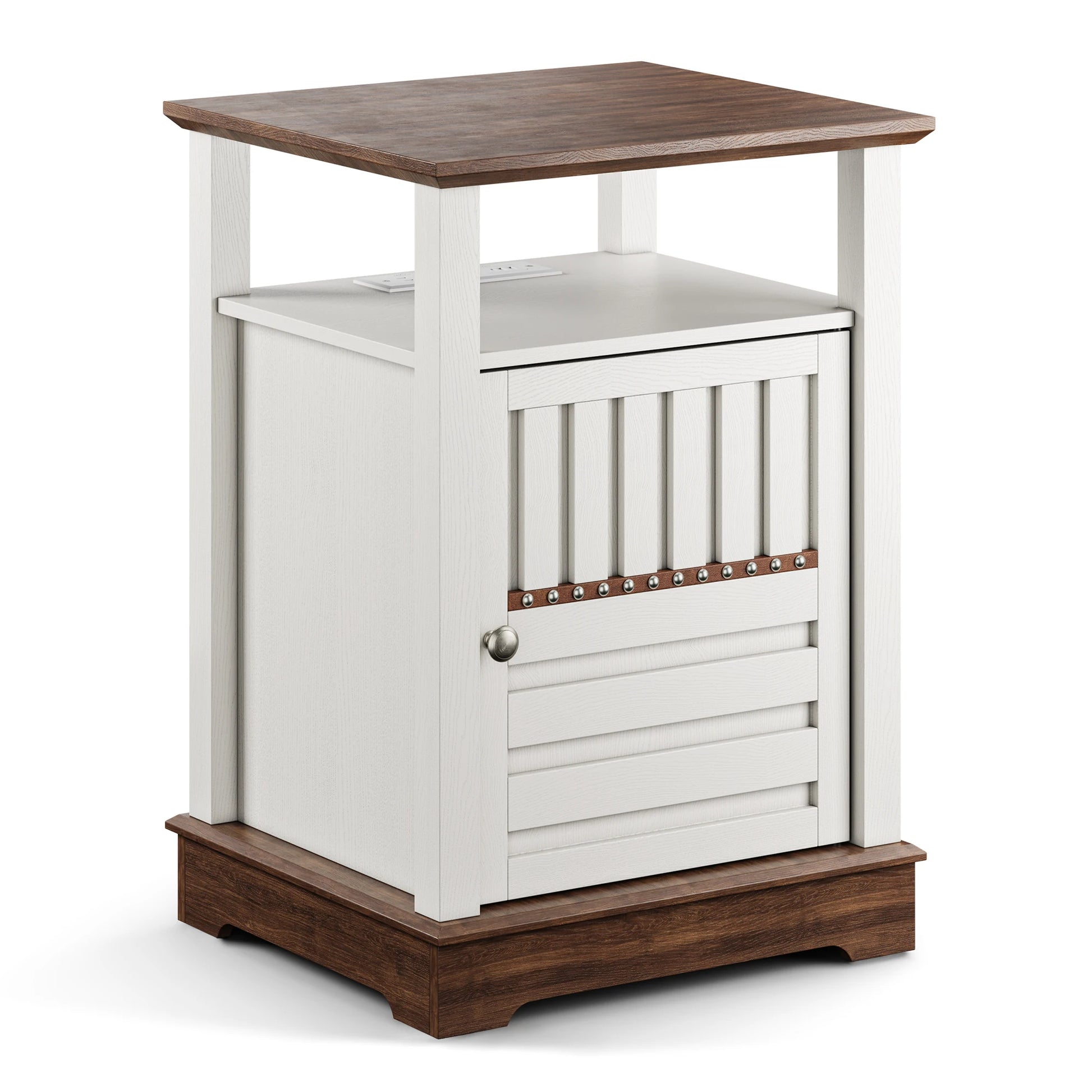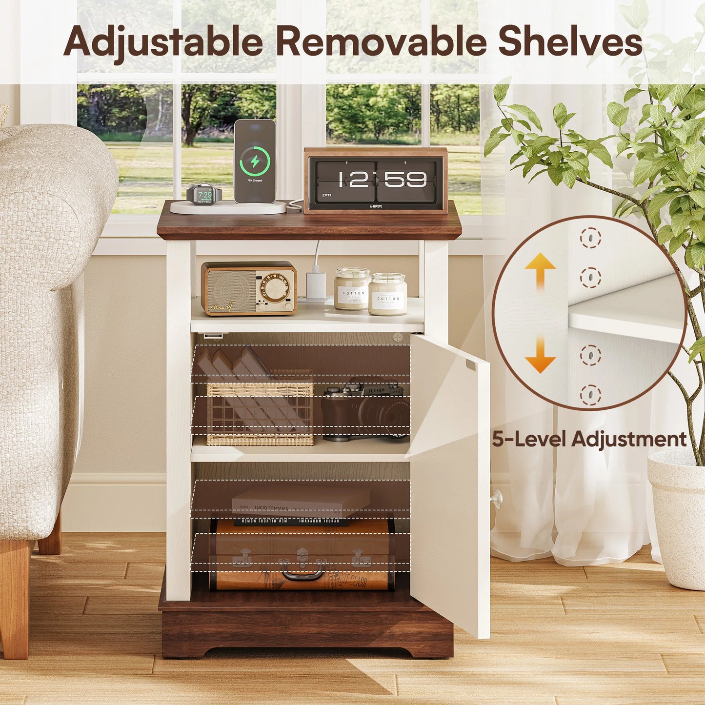 Nightstand with Charging Station Adjustable Open Shelf Farmhouse Style