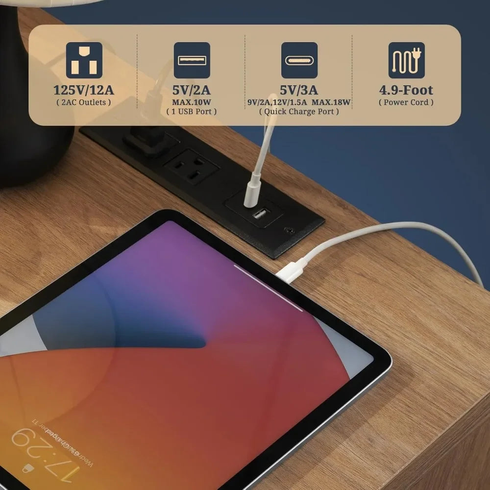 - Convenient Charging Options: Each nightstand features 2 power sockets, 1 Type-C port, and 1 USB port for easy access to charging your devices.
