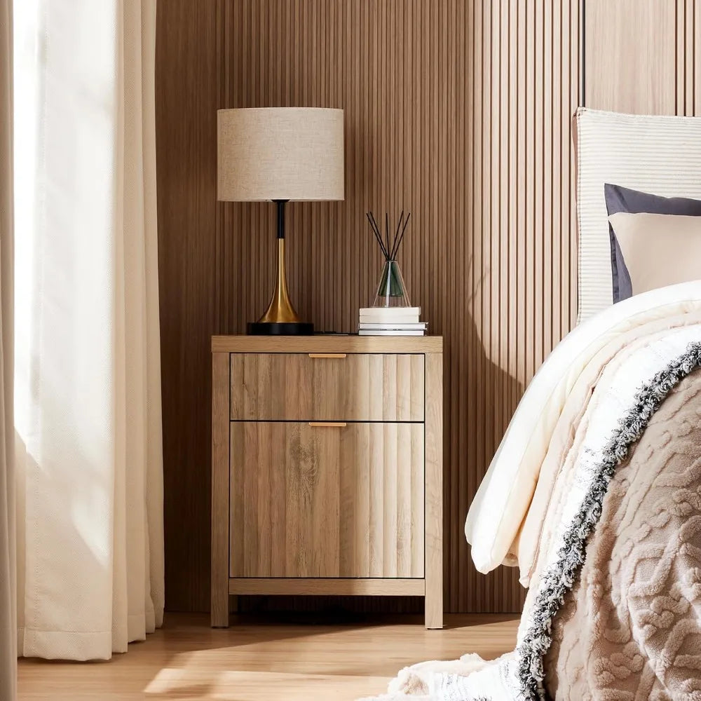 Nightstand Set of 2 Fluted Modern End Tables with Charging Station
