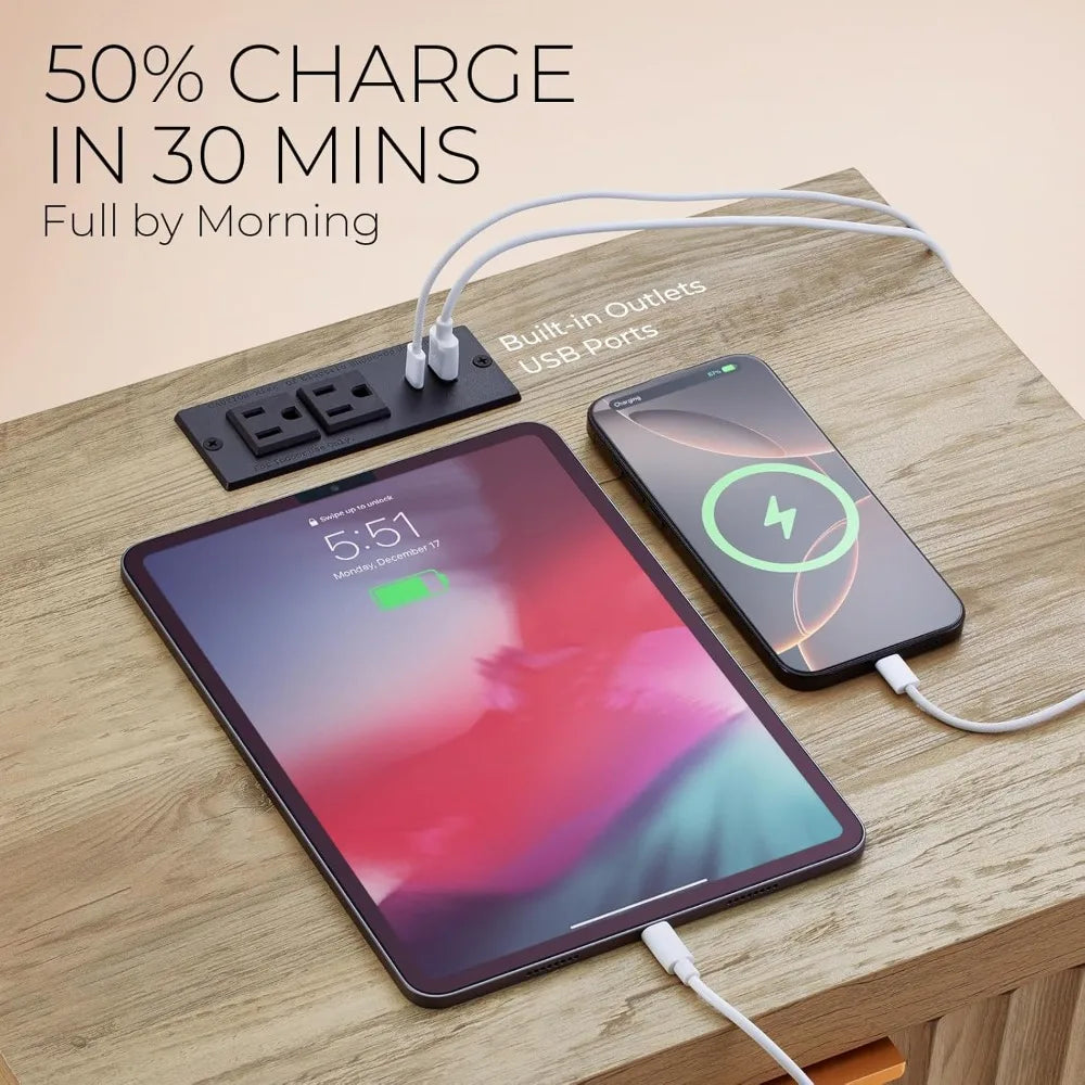 - Enhanced Charging Features: Equipped with 2 power outlets, 1 fast-charging port, and 1 USB port, this nightstand allows you to charge multiple devices effortlessly. The 4.9-foot power cord provides versatile placement options.