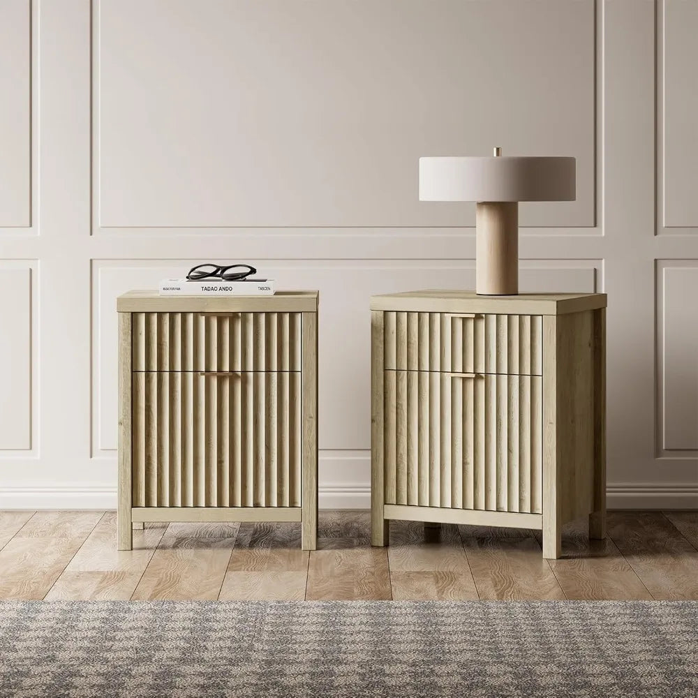 Elevate your bedroom or living room with our Ljustra Night Stand Set, a beautifully designed duo that combines style and functionality. This set features elegant fluted detailing and modern aesthetics, making it the perfect addition to any contemporary space.