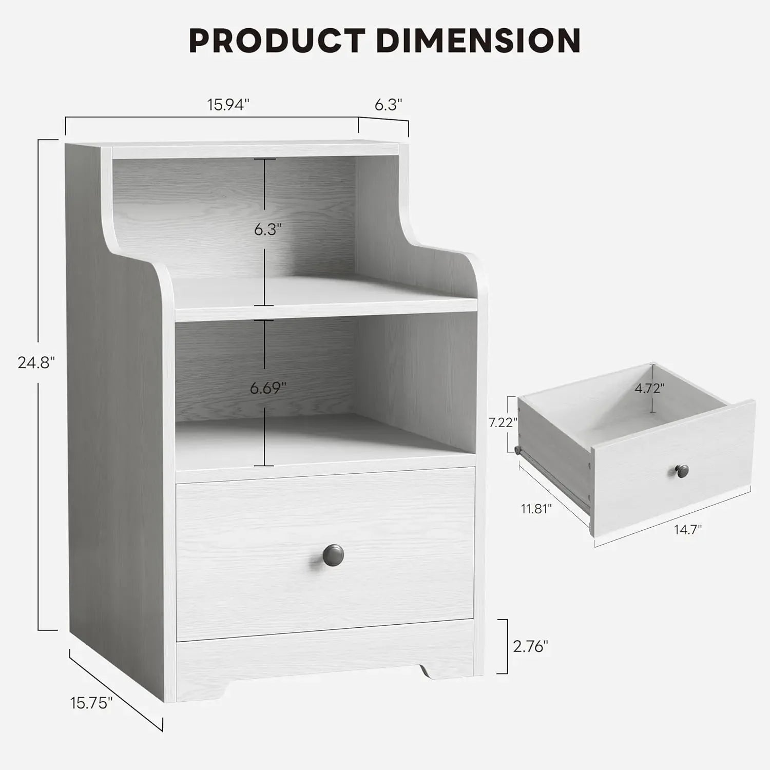 Modern Nightstand with Drawer Open Shelf Bedside Table Storage