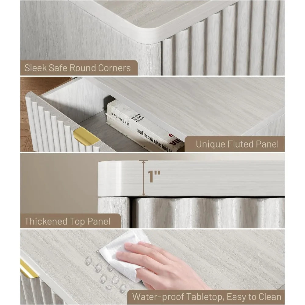 Introducing the Ljustra Nightstands Set of 2, a perfect blend of style and functionality designed to elevate your bedroom or living room decor. These modern fluted nightstands are not just furniture; they are a statement of elegance and practicality.
