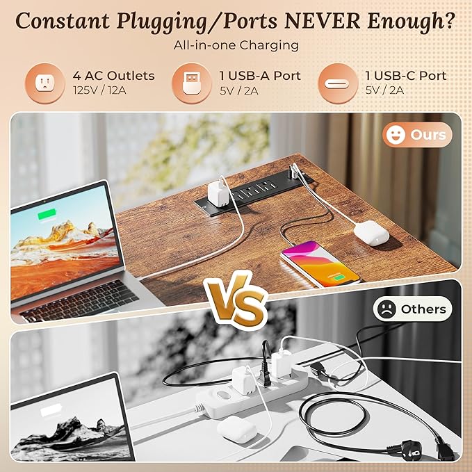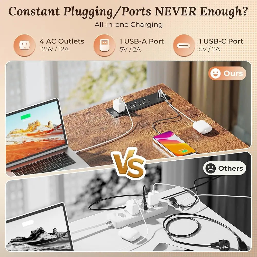 - Convenient Charging Station: Equipped with 4 AC outlets and 2 USB ports, eliminate the hassle of crawling under your desk for power.