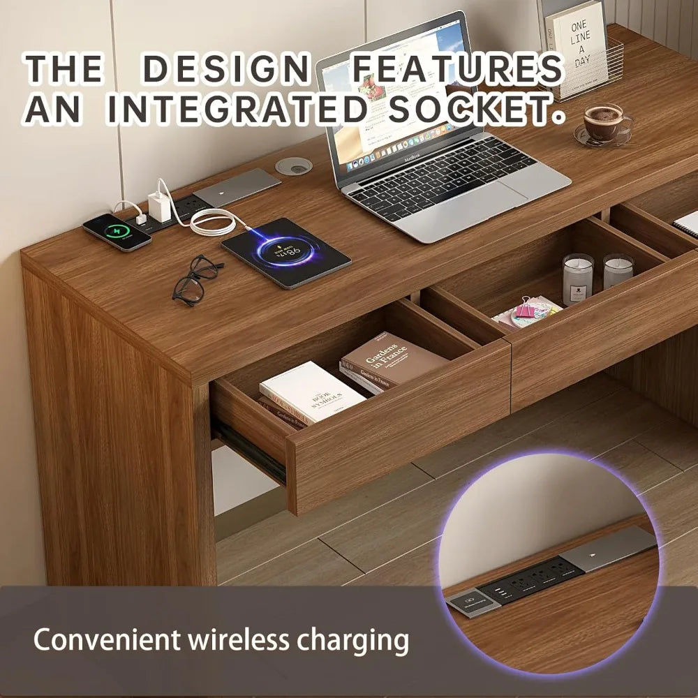 - Enhanced Safety: The desk features a secure pull-out charging station with 2 USB ports and 2 standard outlets, equipped with fireproof material to keep your family safe.
