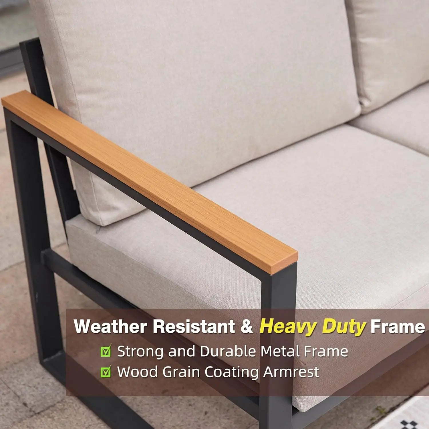 - Comfortable Cushions: Enjoy 4” thick deep seating cushions filled with high-quality material, ensuring comfort and support while retaining their shape.