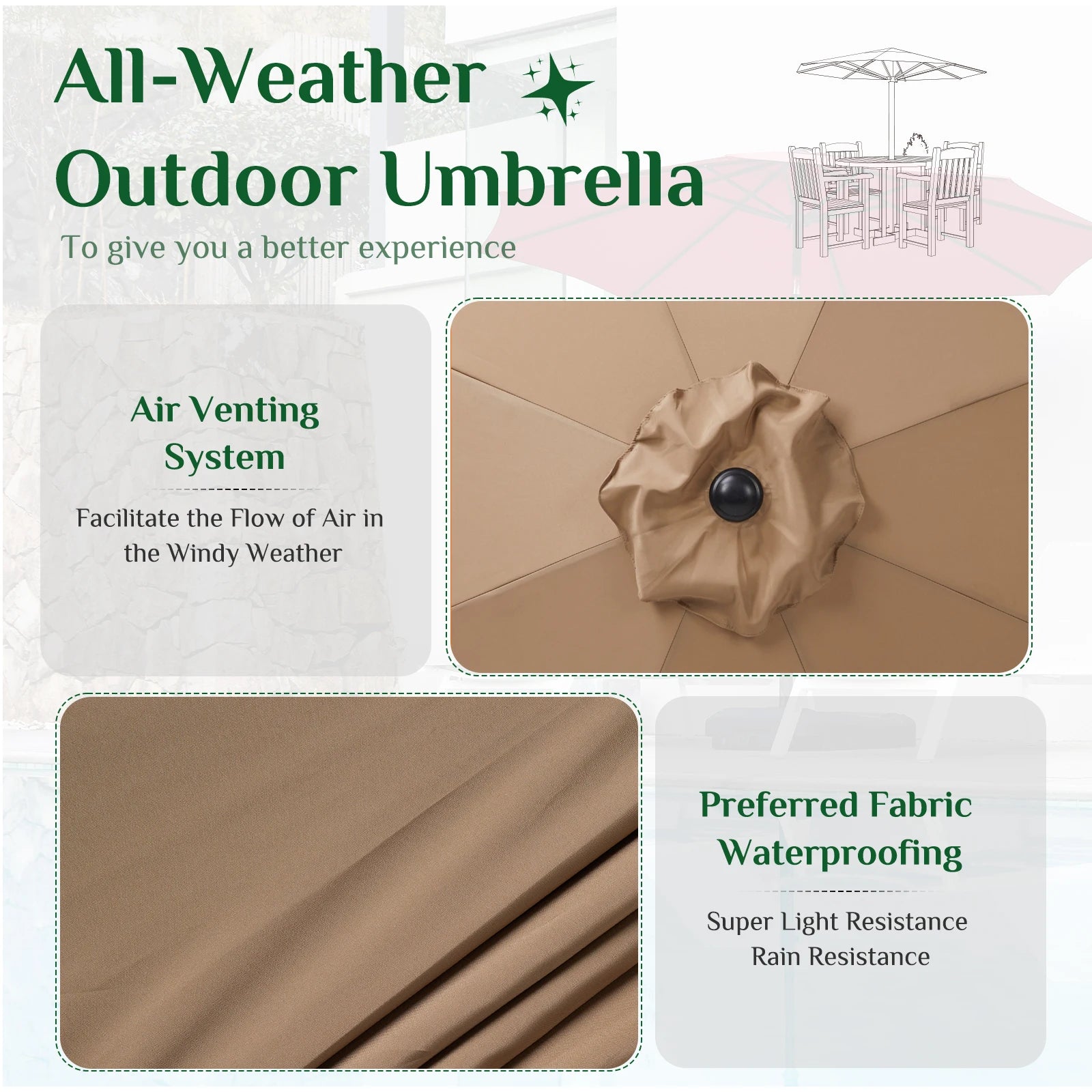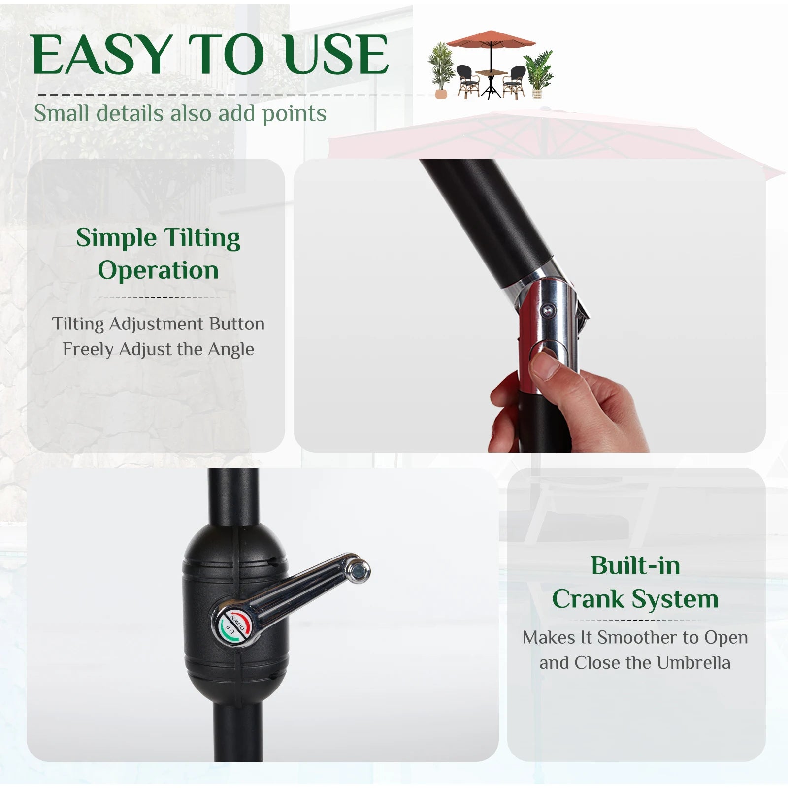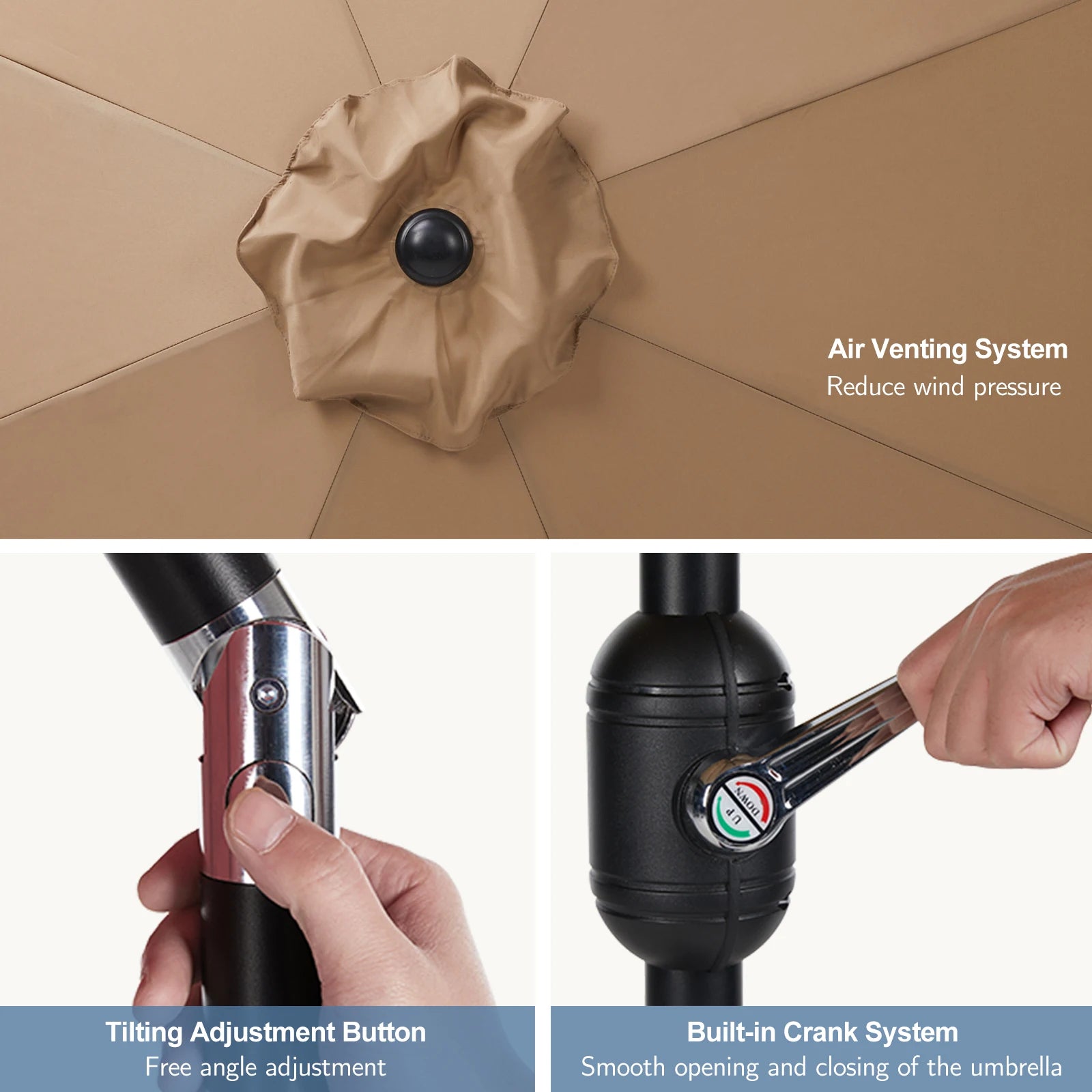 - š Easy Operation: Effortlessly open and adjust the umbrella with the crank system and button tilt mechanism.