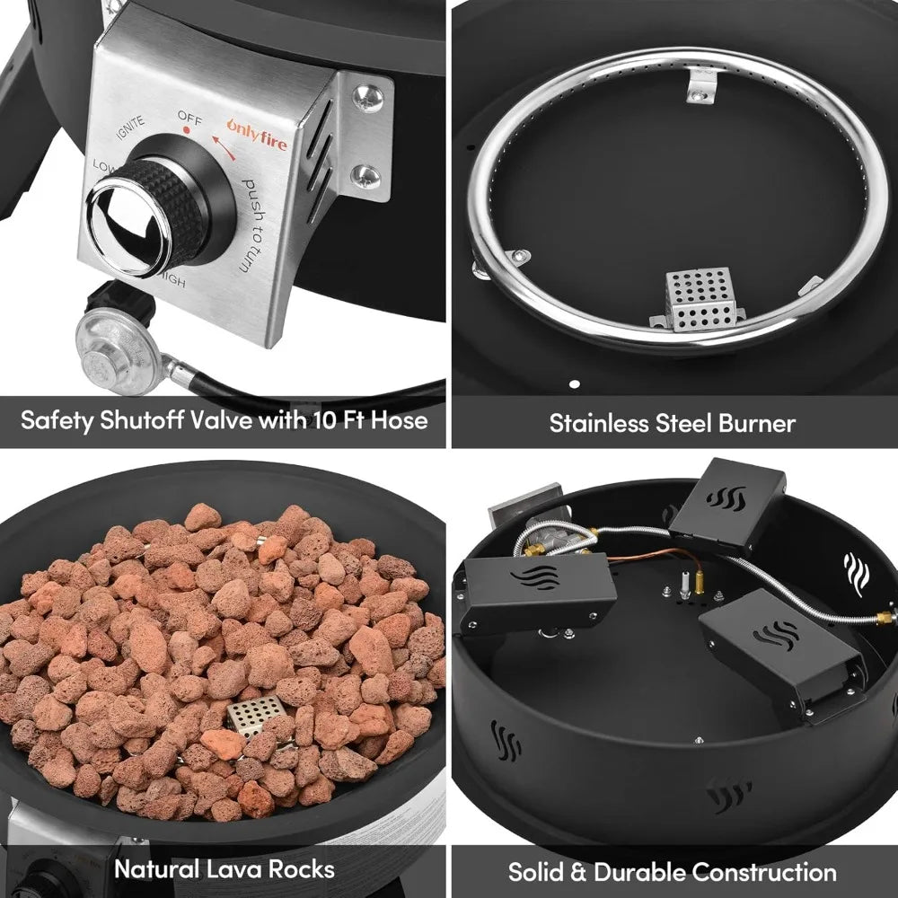 - What’s Included: Comes with a 12 Ft hose, safety shutoff valve, and 8.8 lbs of lava rocks.