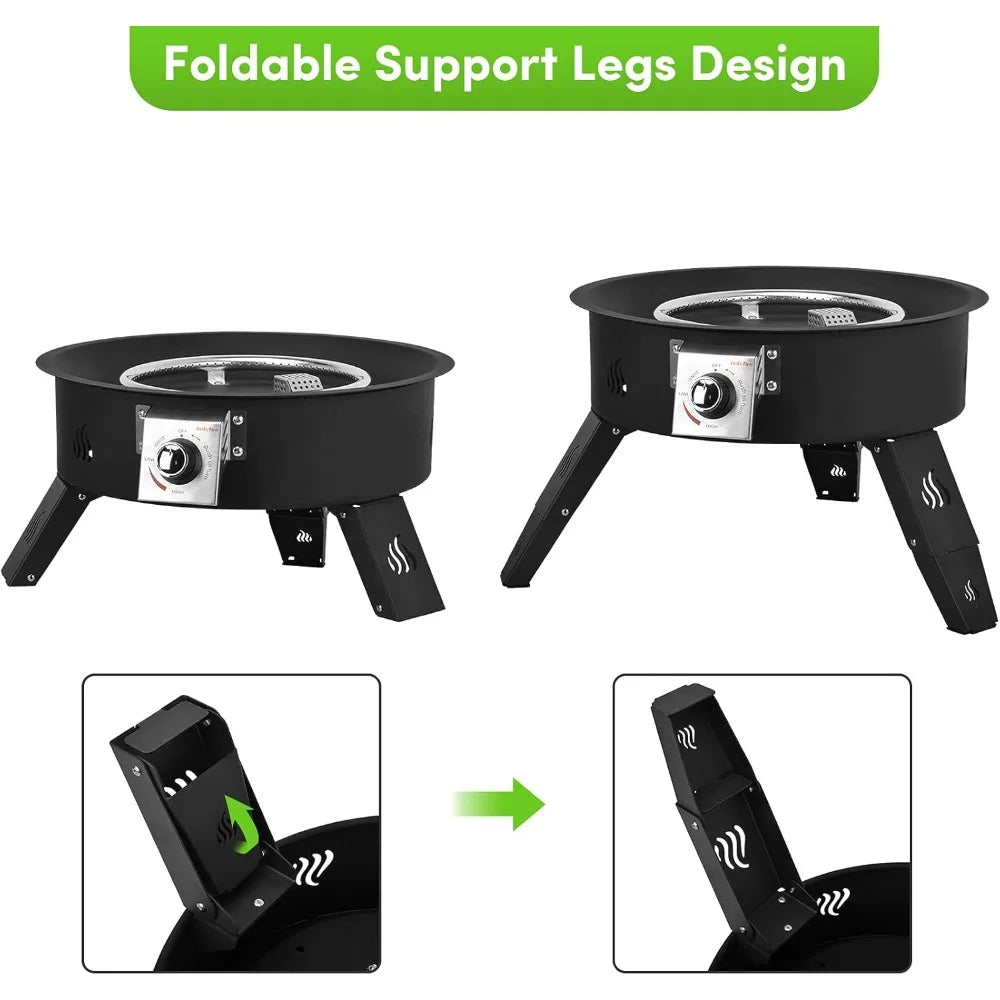Ljustra Outdoor Propane Fire Pit 19 Inch Portable Smokeless Gas Firebowl