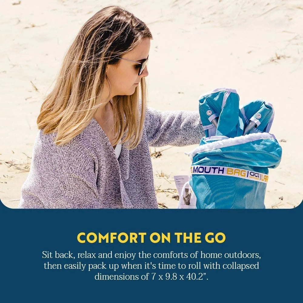 - Convenient and Portable: The wide mouth carry bag makes transport easy, and the chair folds down to a compact size for storage.
