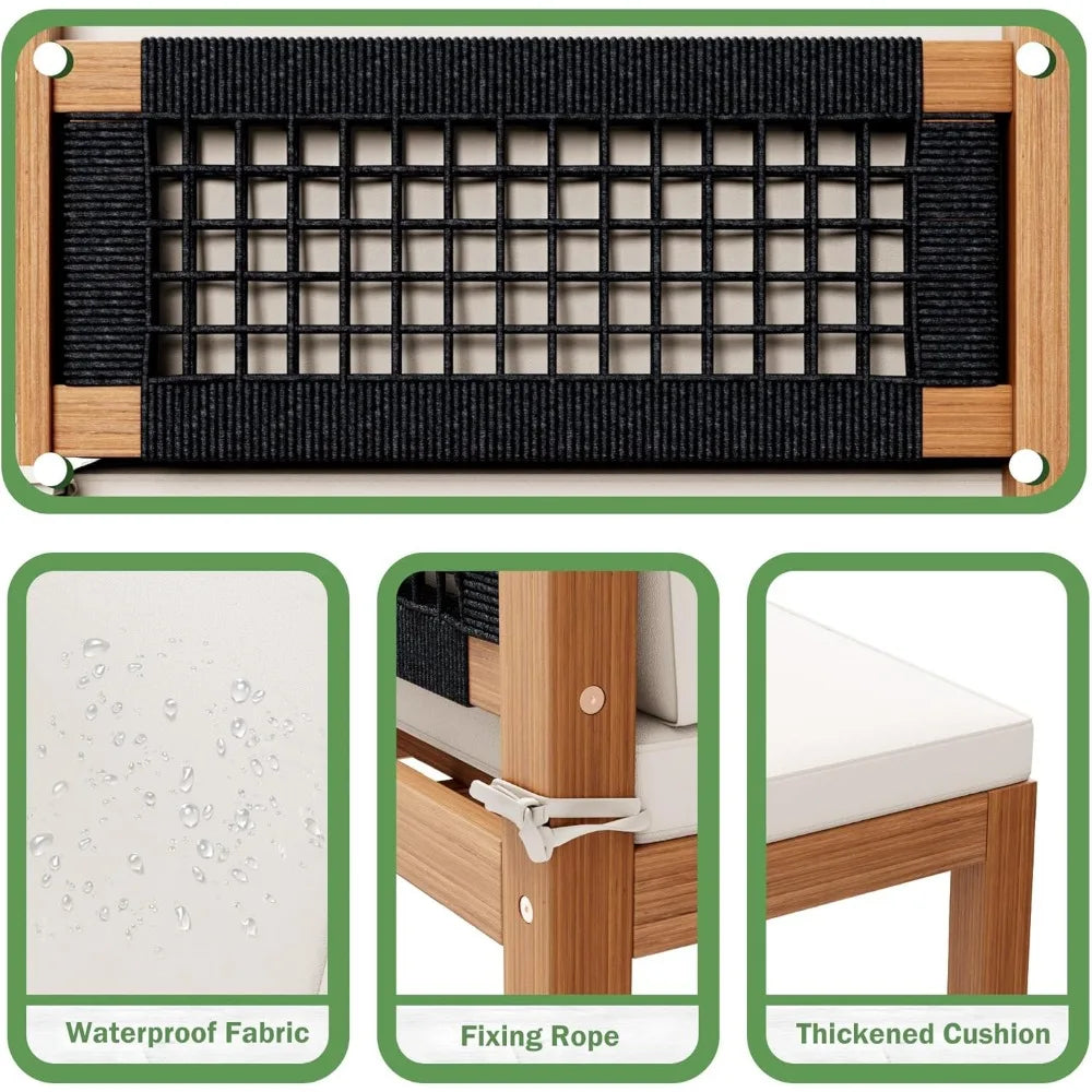 Outdoor Sectional Couch Patio Sofa Set with Acacia Wood Coffee Table