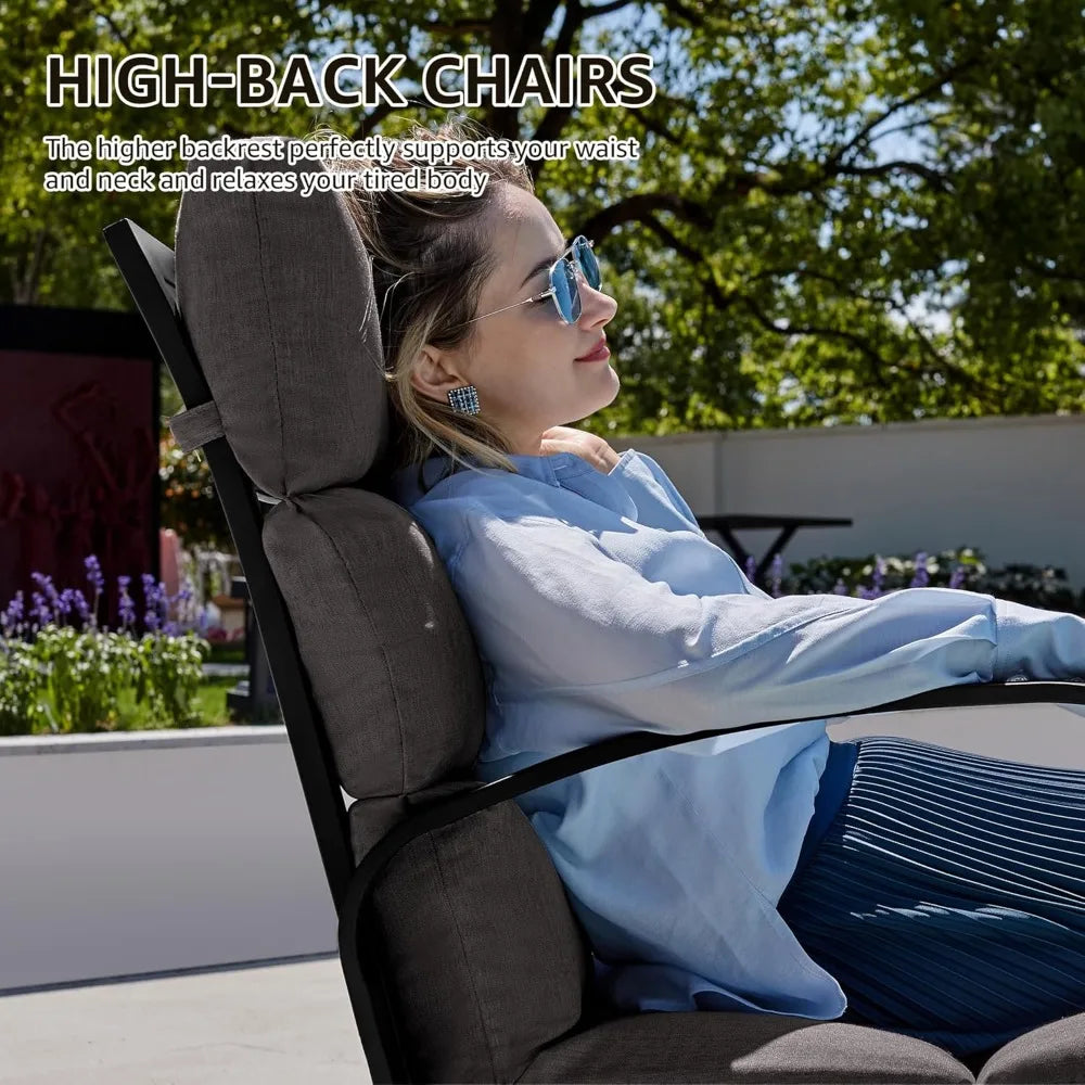 - Durable Construction: Made with a robust iron frame and weather-resistant cushions, this set is built to withstand the elements and support up to 350lbs.