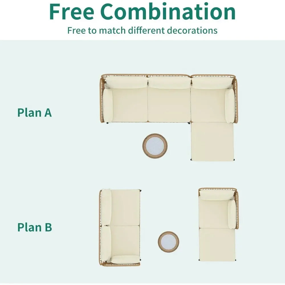 Elevate your backyard, porch, or patio with the Ljustra 3 Pieces Patio Furniture Set. This Outdoor Wicker Conversation Sectional L-Shaped Sofa is designed for maximum comfort and style, perfect for relaxing and entertaining.