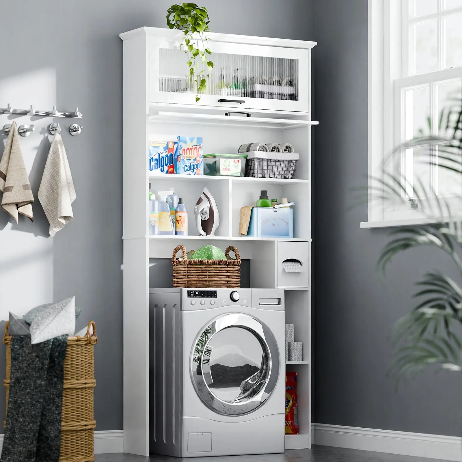 - Stylish Design: The modern style fits seamlessly into any bathroom or laundry room.