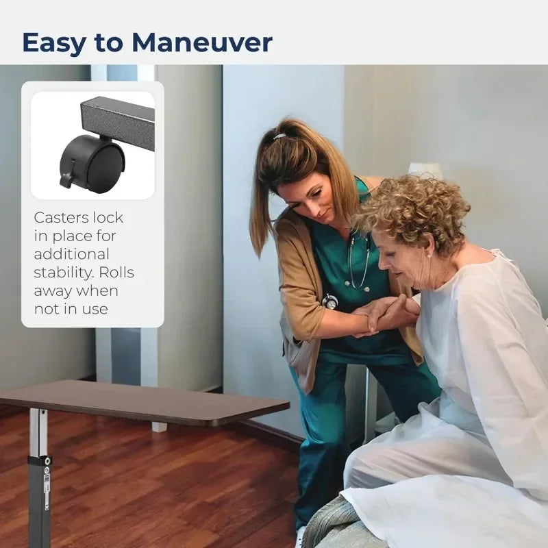 Discover the perfect blend of style and functionality with the Ljustra Adjustable Overbed Table. Designed for versatility, this table serves as a bedside table, adjustable standing desk, or hospital tray table, making it an essential addition to any home or healthcare setting.