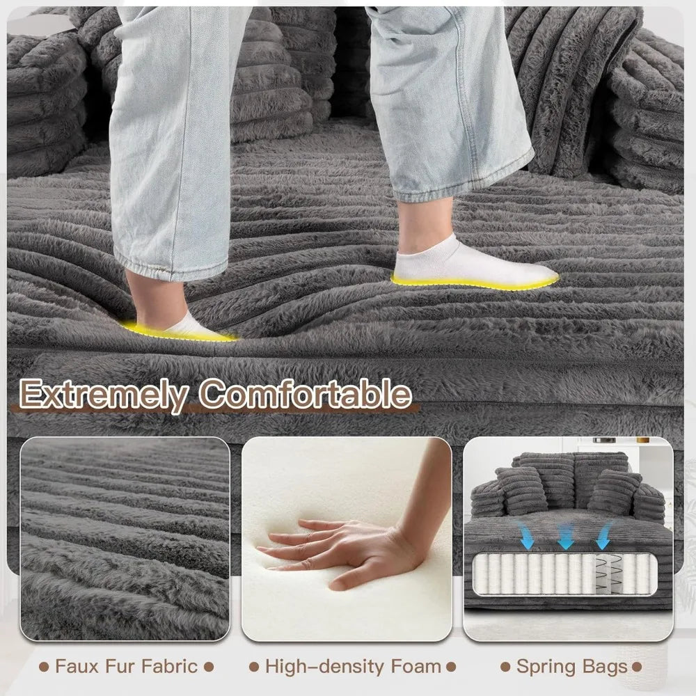 Ljustra 56" Oversized Chaise Lounge Chair Plush Faux Fur Sofa Bed