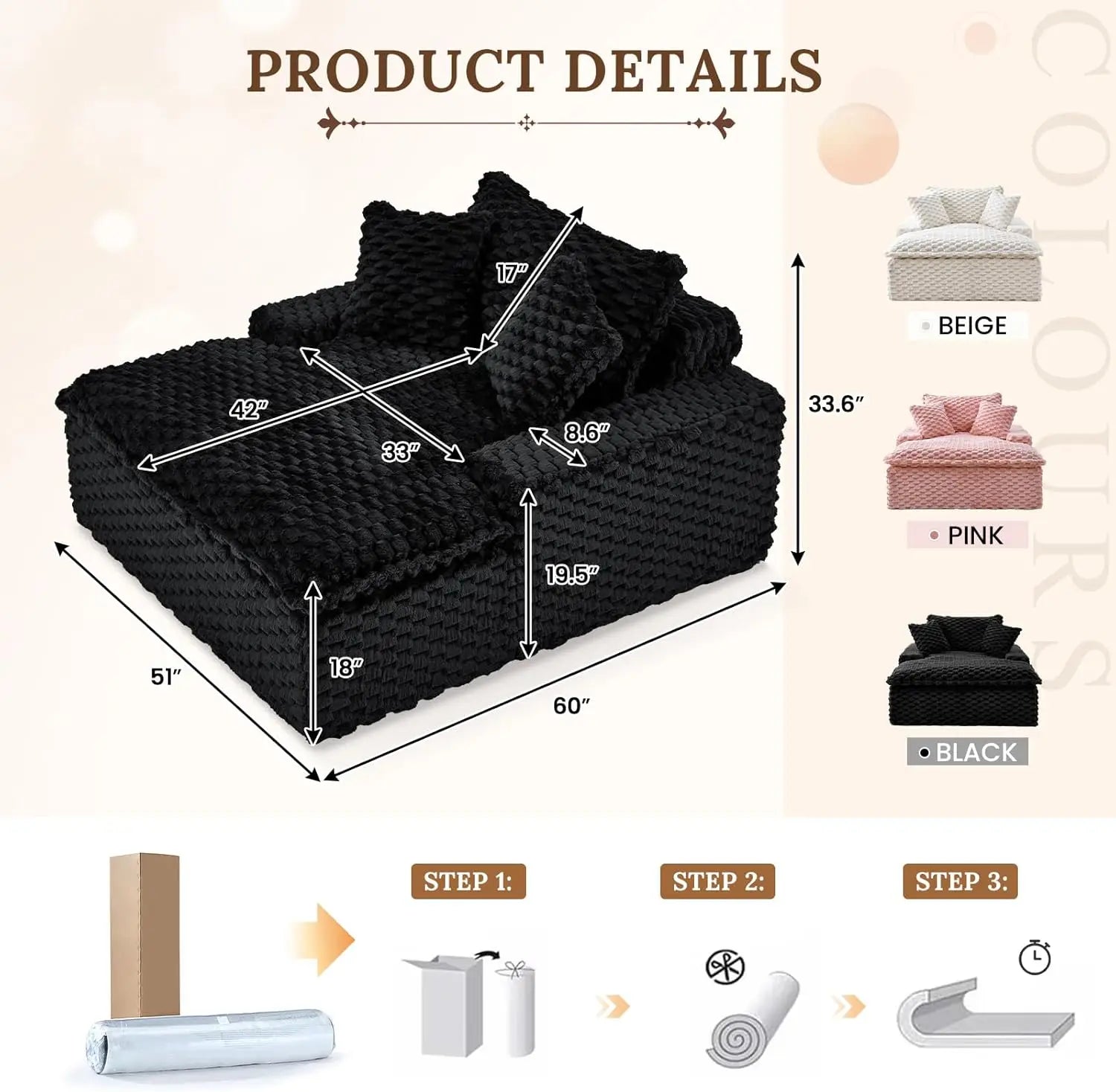 - No Assembly Required: The boneless design arrives compressed in one box, easily fitting through doorways. Simply unpack and let it plump up—no tools needed!