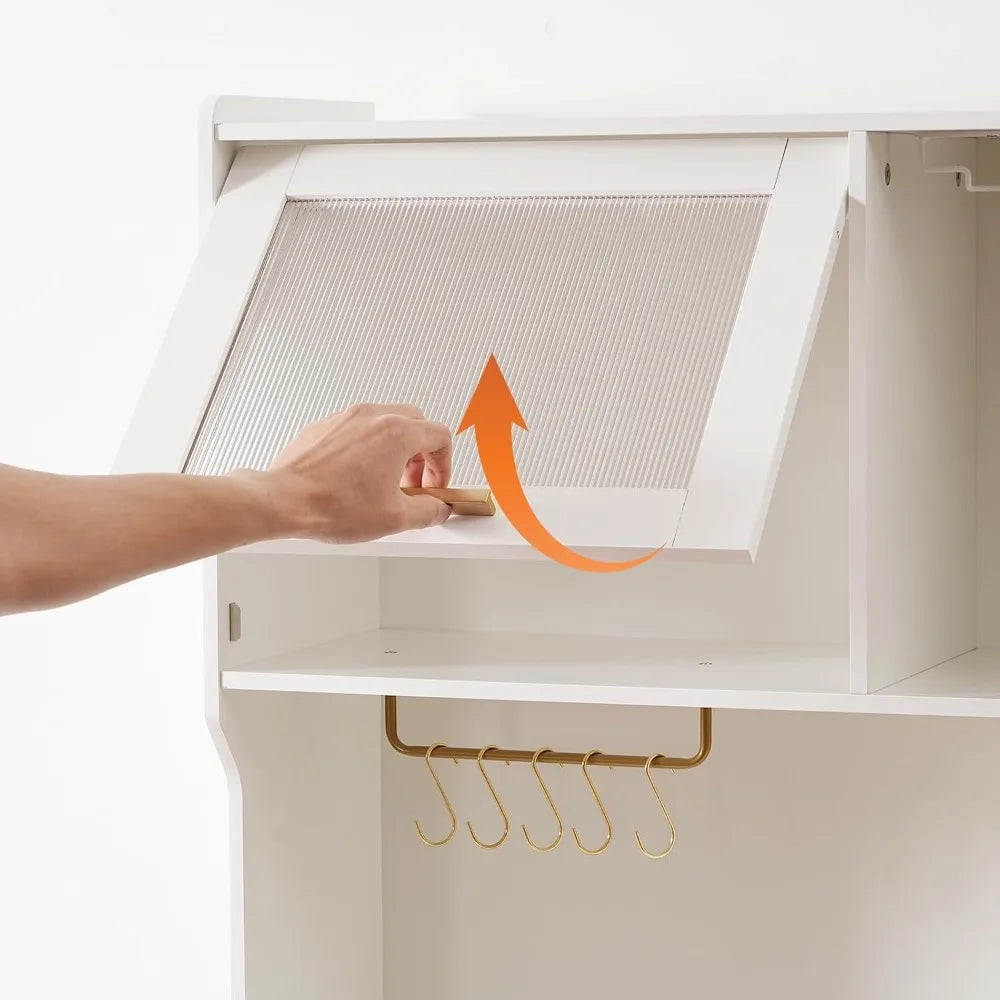 - Flexible Storage Options: Includes a countertop for microwaves, a flip-up compartment for spices, and an adjustable shelf for versatile storage solutions.