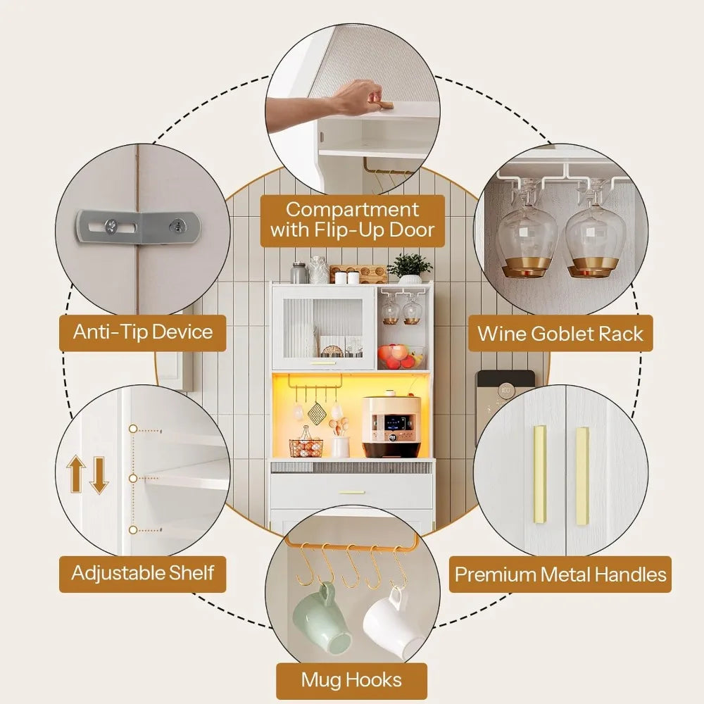 Ljustra Pantry Cabinet 67 Inch Kitchen Storage with LED Lights Charging Station