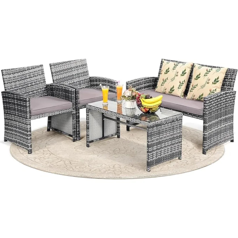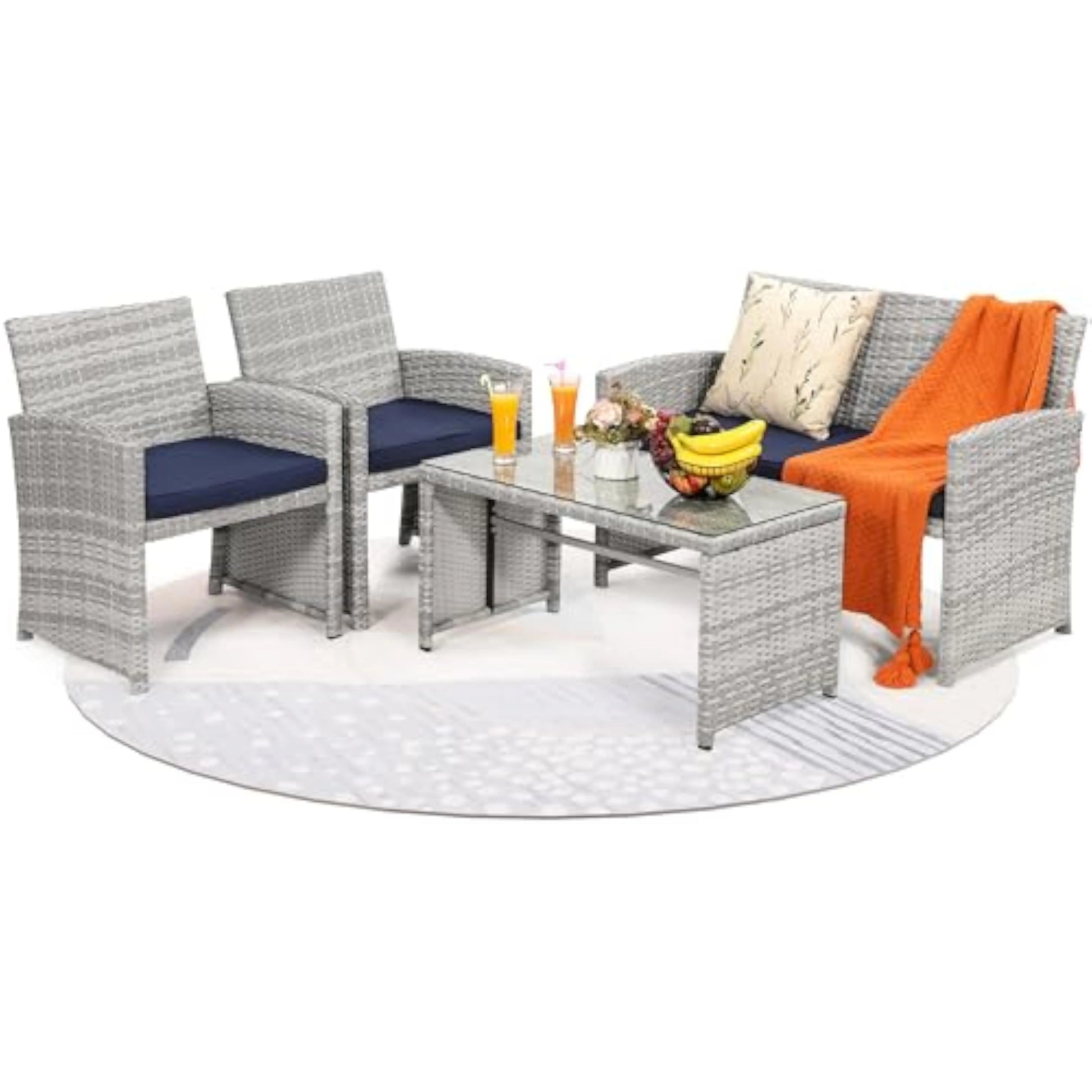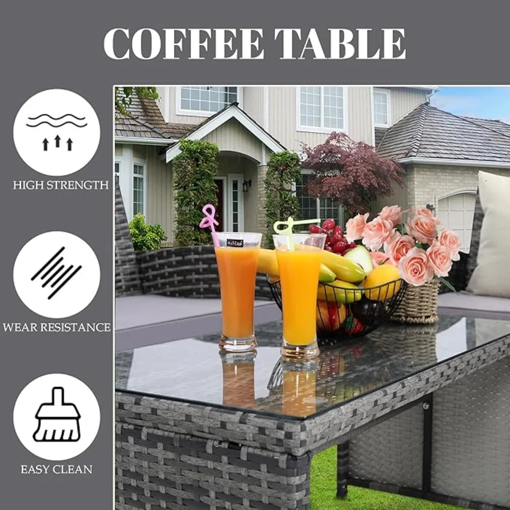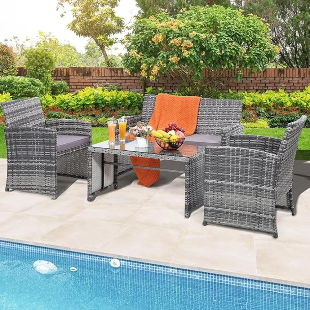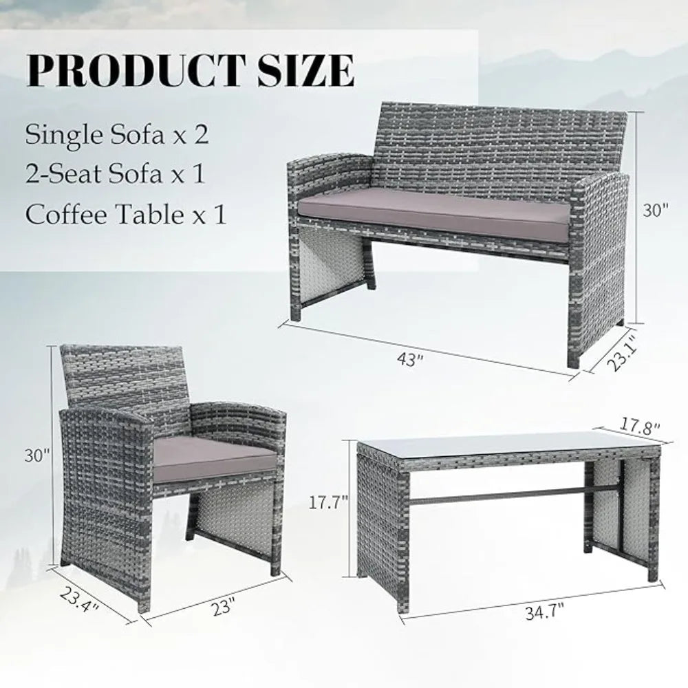 Experience comfort and style with our 4 Piece Patio Furniture Set, designed for your garden, patio, or balcony. This exquisite outdoor sectional conversation set includes: