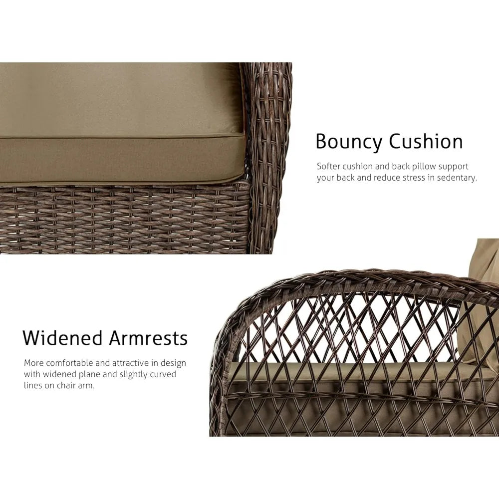 3 Pieces Patio Furniture Set Outdoor Swivel Glider Rocker Wicker Bistro Set