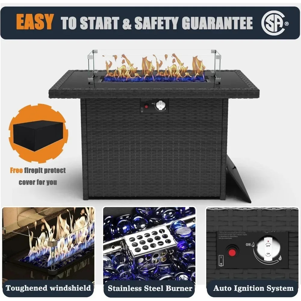 - Fire Pit Table: The included 60000 BTU fire pit features electronic pulse ignition, enhancing safety and stability for cozy evenings.