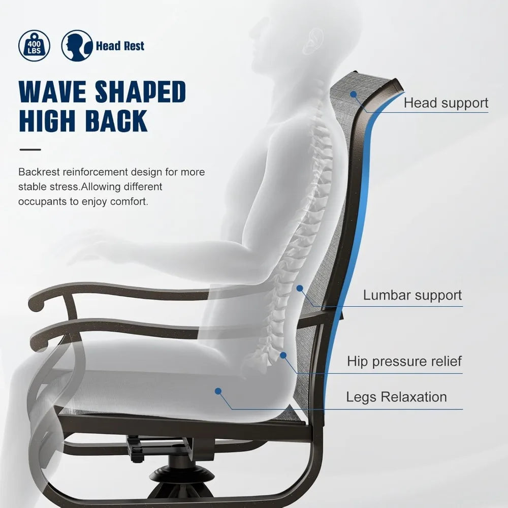 Patio Swivel Dining Chairs Set of 2 Outdoor High Back Rocking Chairs