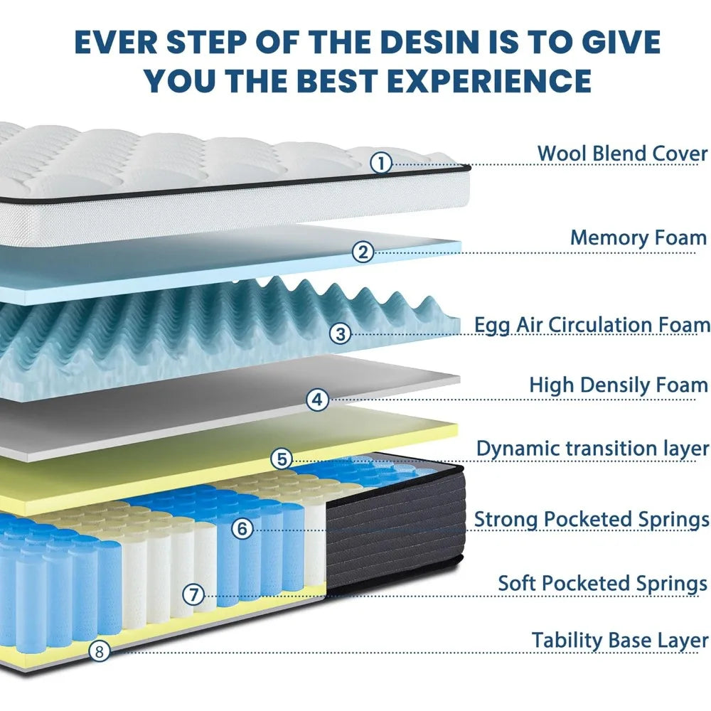 - Pocket Spring Support: Individually pocketed springs provide targeted support that adapts to your body's contours, reducing motion transfer for undisturbed sleep.
